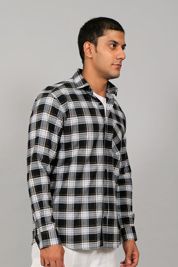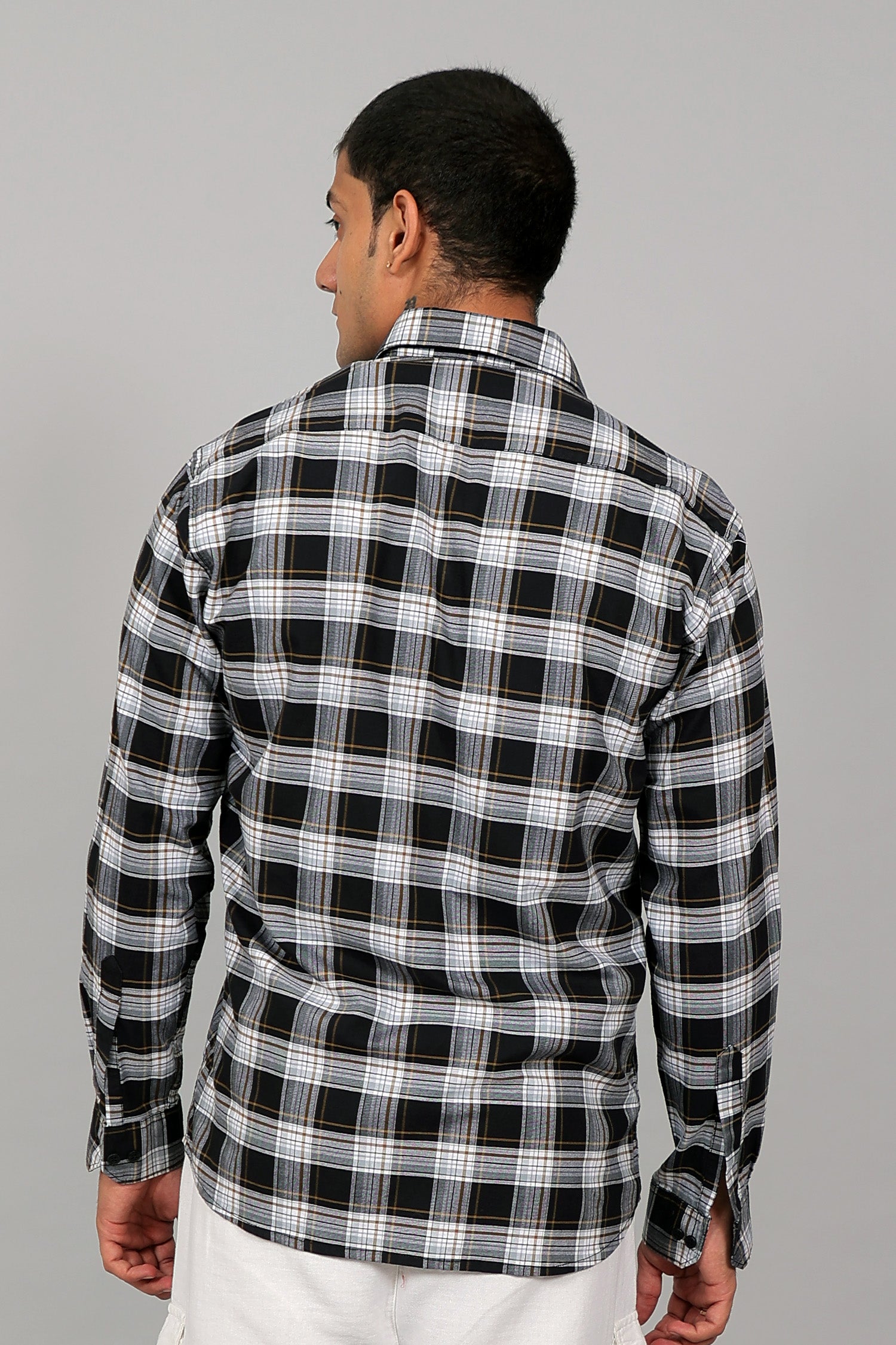 Smart and timeless, this Black, White, and Beige Checked Shirt exudes effortless elegance. Pair it with formal trousers or denim for a refined look.