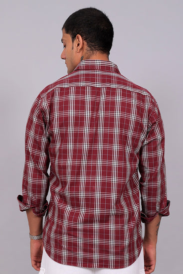 Stand out in style with this Maroon Line Check Shirt, featuring a modern checked design with subtle detailing. A perfect blend of tradition and trend for versatile wear.