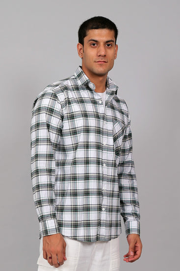Bluebird Men’s WHITE BLACK GREEN Checked Shirt