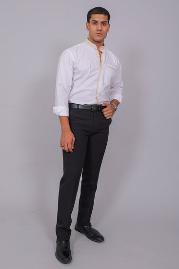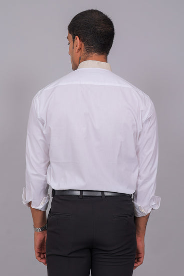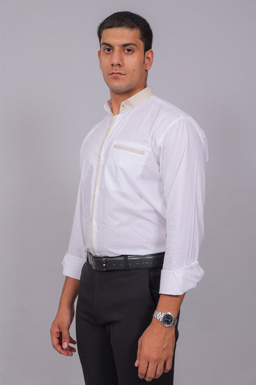Make an effortless statement with this White Shirt featuring subtle beige accents. Designed with a mandarin collar, straight hemline, and a clean silhouette, it’s a versatile piece that transitions seamlessly from casual daywear to smart evening gatherings.