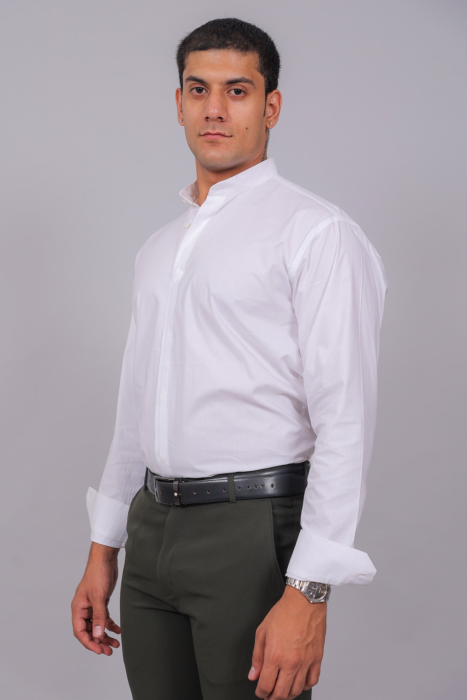 Add an understated charm with this Half Placket White Shirt. The sleek placket detail combined with breathable cotton fabric makes it a perfect balance of comfort and style for both work and leisure.