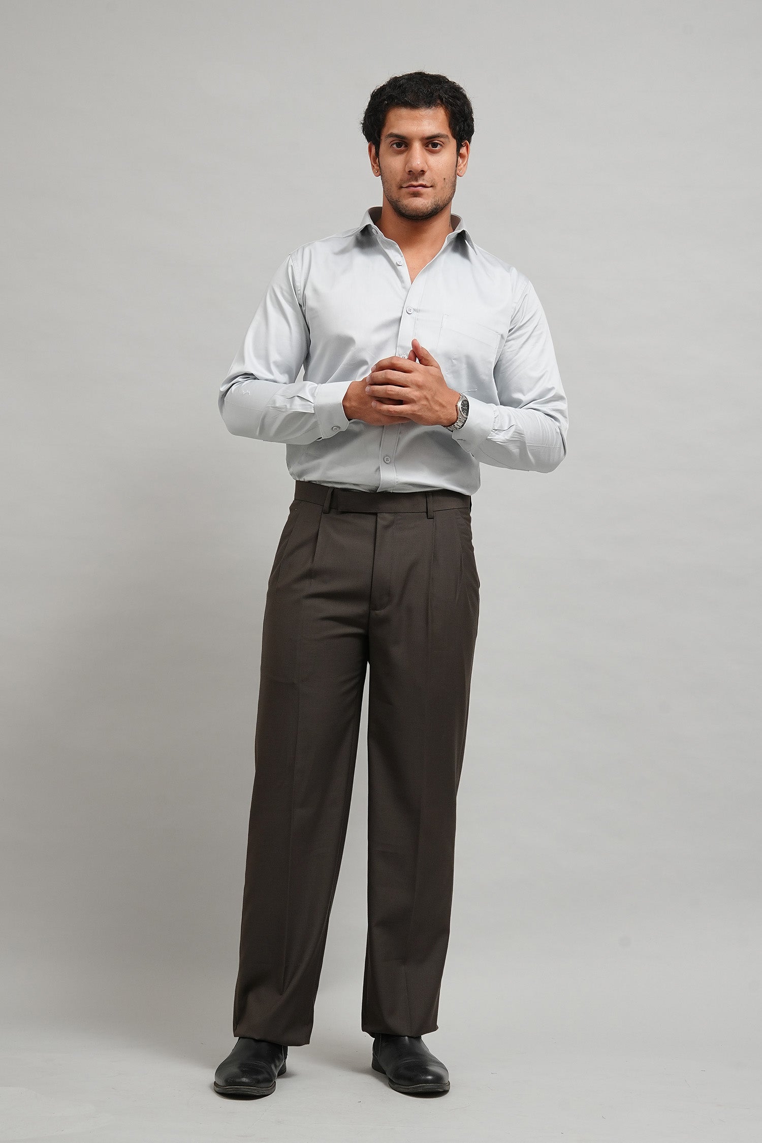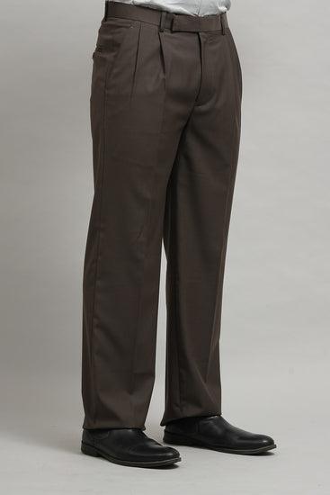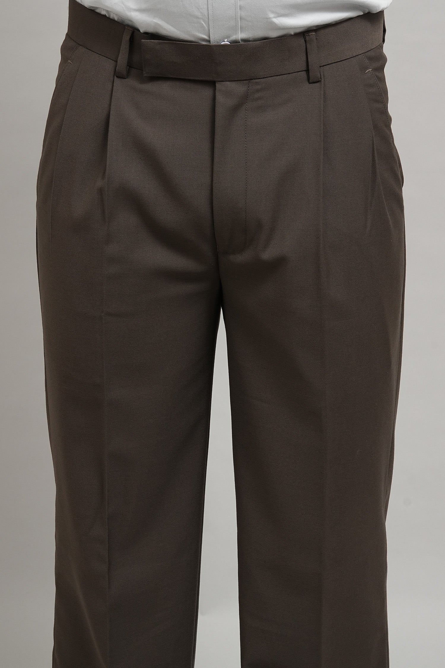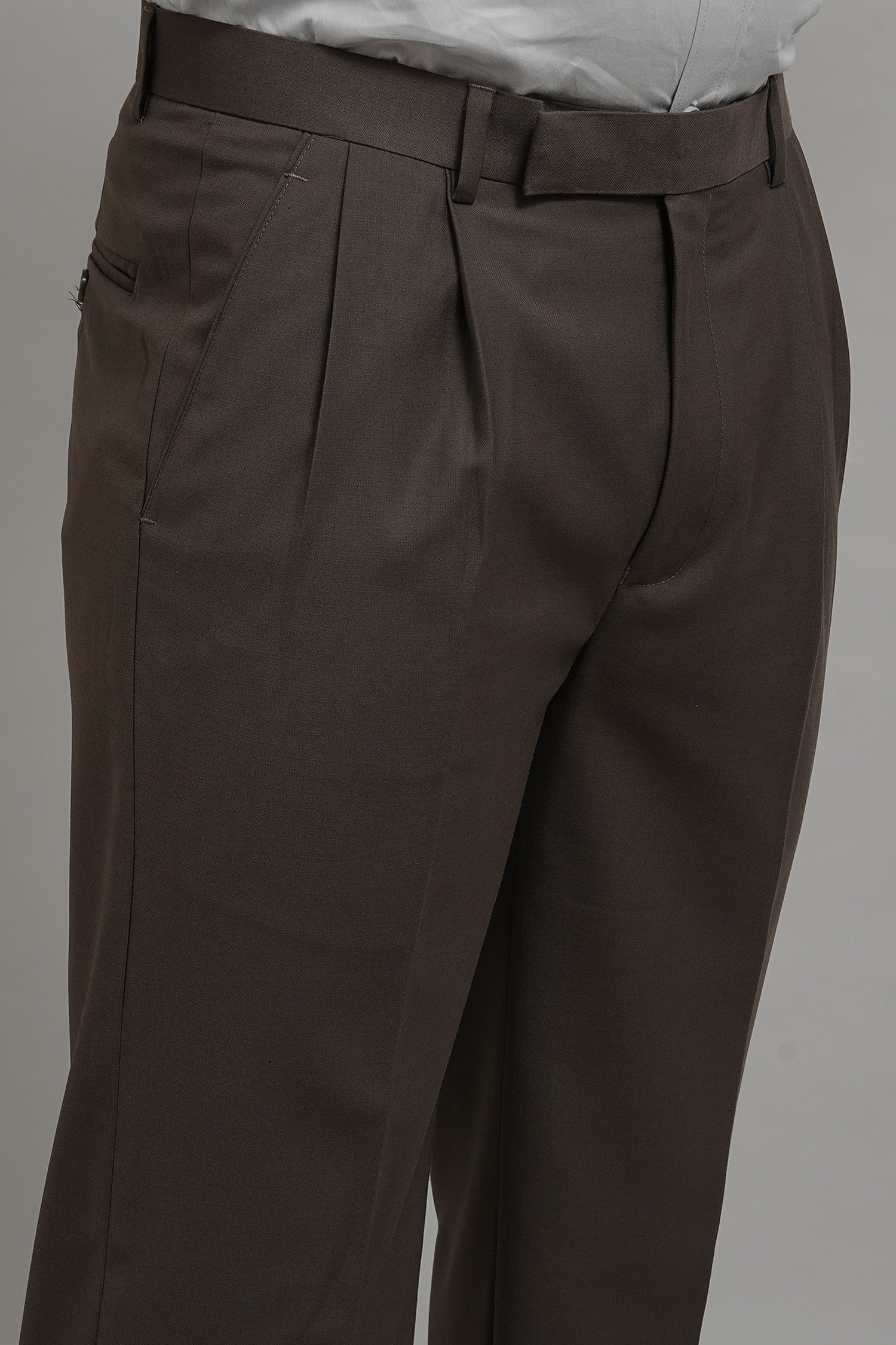 These mocha brown pleated trousers are tailored with refined precision, designed to deliver a clean, structured silhouette with all-day comfort. The smooth waistband, crisp pleats, and neatly stitched finishing make them an effortless choice for both office and evening dressing. Crafted from a soft yet durable fabric blend, they offer breathability and long-lasting shape retention. The pleated front enhances sophistication, making these trousers a versatile staple for formal meetings, celebrations, and smart casual outings. Step into a polished, confident look that stays impeccable from morning to night.
