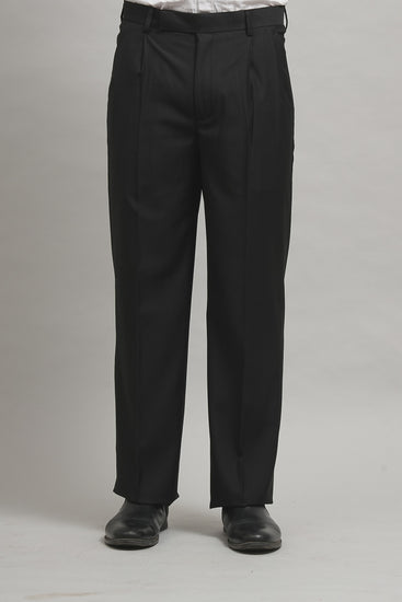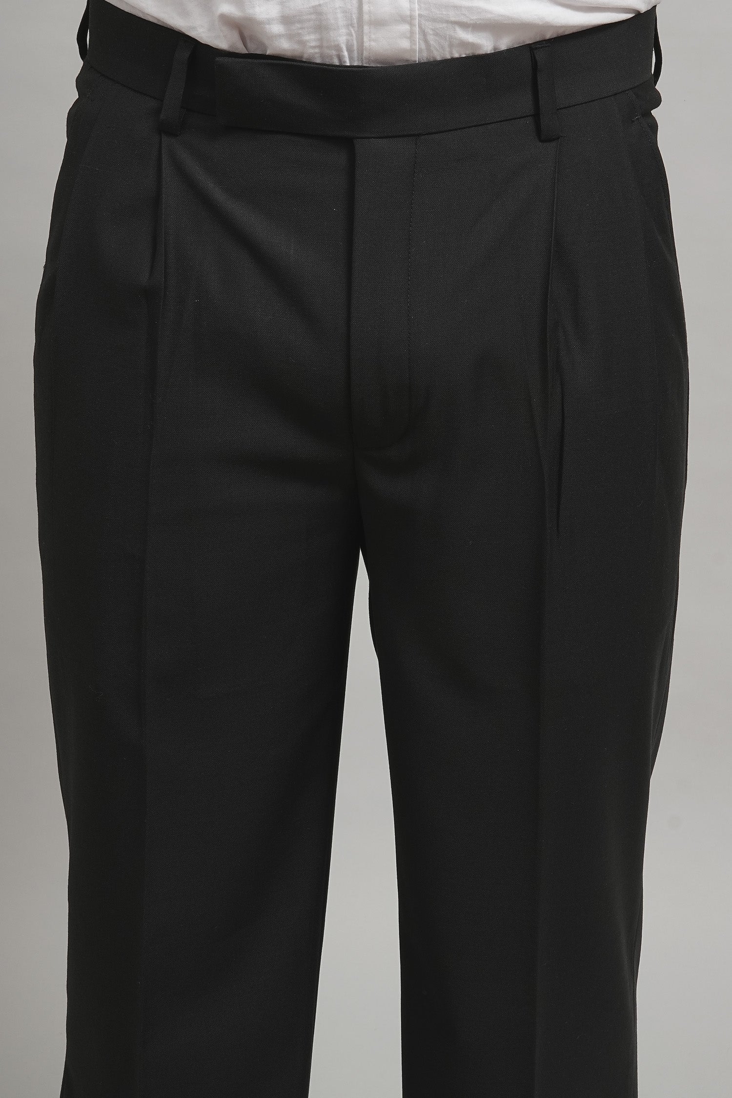 These classic black pleated trousers are tailored with clean lines and meticulous detailing, ensuring a sharp, structured fit. From the smooth waistband to the neatly finished pleats, every element is designed to offer all-day comfort without compromising on sophistication. Crafted from a durable, soft-touch fabric, they transition effortlessly from office hours to evening occasions. The pleated silhouette adds timeless elegance, making these trousers a versatile essential for formal and semi-formal wardrobes. Experience a crisp, polished look that keeps you confident and refined from morning meetings to night events.